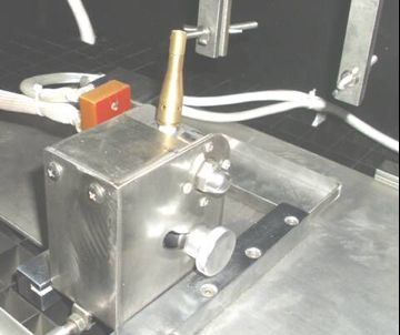 Pembakar yang miring 45° ditarik ke depan secara horizontal sampai api (panjang 20 mm) mencapai titik kontak yang telah ditetapkan sebelumnya