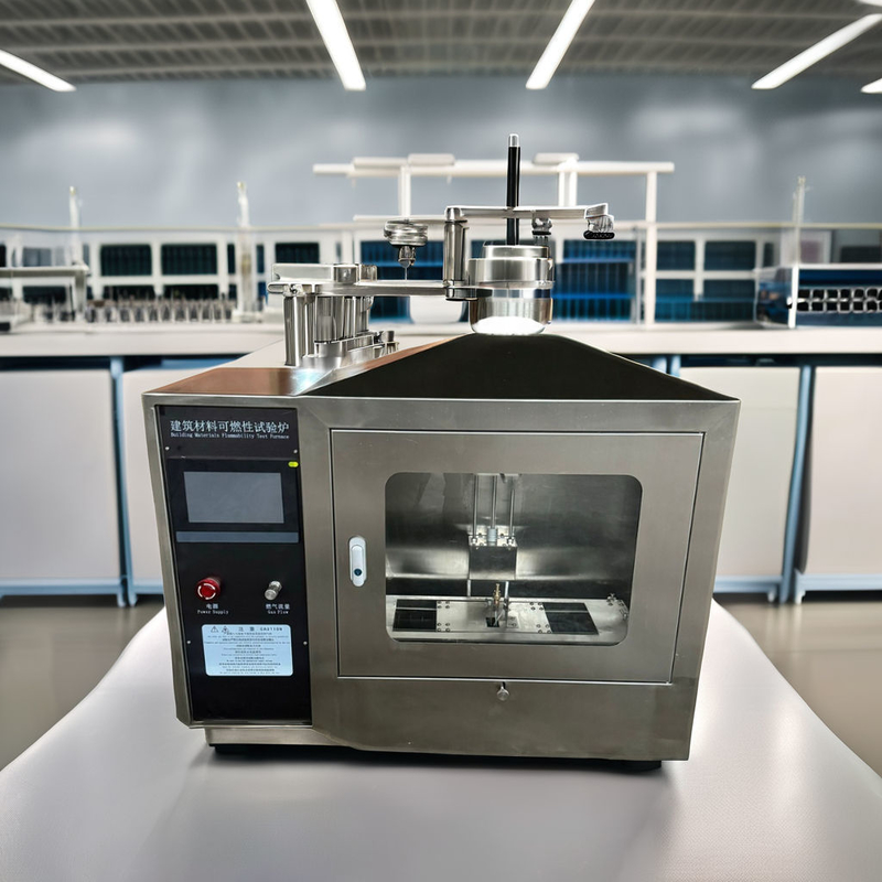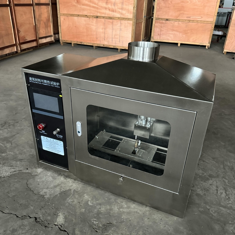 Ignitability test, also called single-flame source test. Test apparatus corresponds to standard EN ISO 11925-2. Test results of the building structure can be classified according to standard 13501-1.