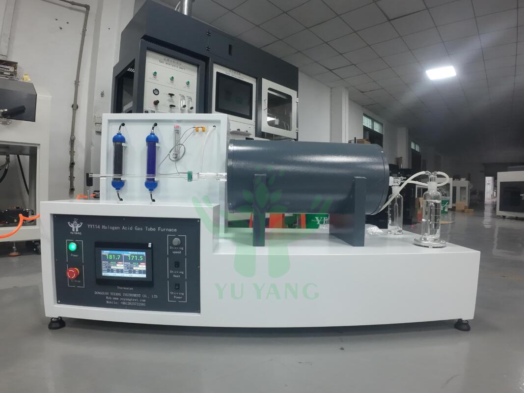 Penguji ini digunakan untuk menentukan jumlah total gas asam halogen dalam kabel tahan api rendah halogen dan bebas halogen dengan mengukur nilai pH dan konduktivitas gas pembakaran.